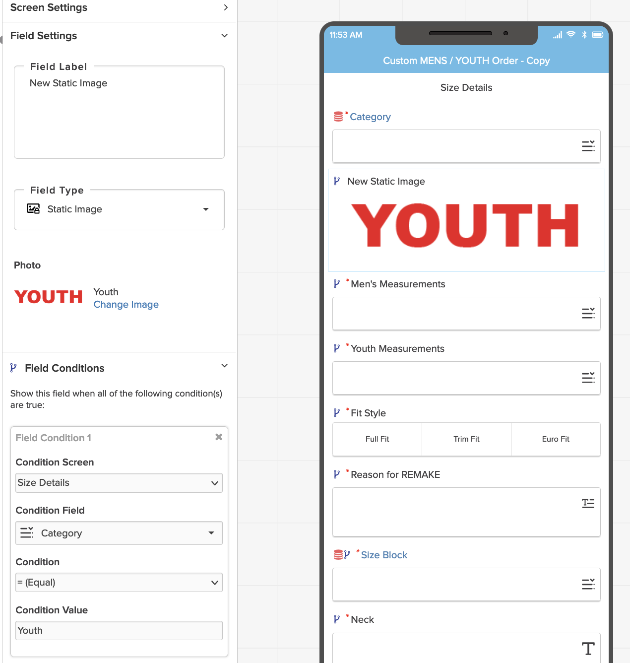 I'm not sure if that image has more information to it, but, where I see "Youth" you could potentially make this a static text field, make that conditional, then on the Designer PDF add the formatting by making the text larger and changing the color. How to customize and edit a PDF using the PDF designer.