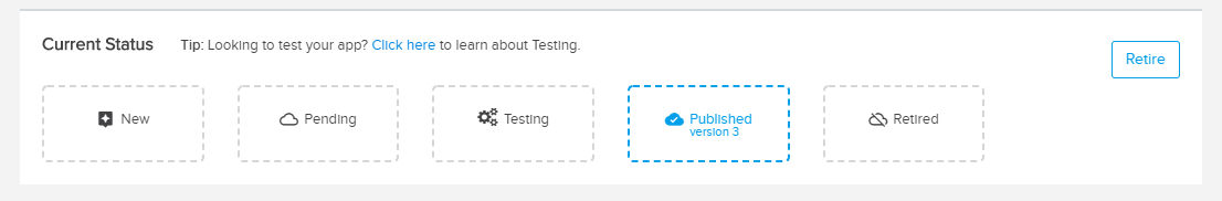 Would this be maybe some iteration on this display, on the App Detail page, that would include statuses like "In Review" and "Live," or would you ideally have more granularity here and be able to say "Being reviewed by Sara"?