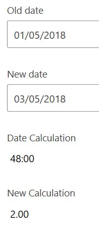 On an inspection form wanting to determine the duration of the job in days by subtracting the project completion date from the current date.