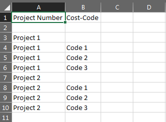 Add another drop down field named Cost-Code. This will be your dependent drop down. Under Reference Data, choose the same reference data file as the first drop down. Select "Cost-Code" in the Reference Column field. Under Reference Screen, select the name of the screen your Project Number drop down is located in. In Reference Field, select the name of your Project Number drop down. This will tell your second drop down to reference the choice made in the Project Number field to determine what is available in your Cost-Code field.