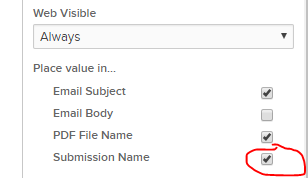 • We do this by including the fields we want in the submission name.  In the app builder, if you access the field(s) in question and go to more, you can check the box by "Submission Name"