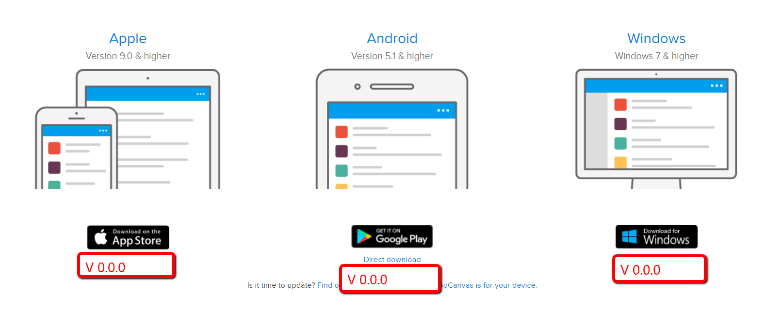 It would be helpful if we could see which version of the GoCanvas client was linked on the www.gocanvas.com/m page prior to clicking the download and then inspecting the file details. This way, we would know just by checking the page whether or not a newly released version was available for download.