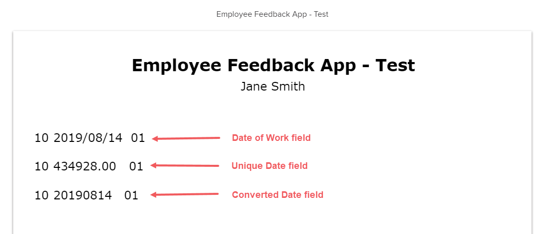-Unique Date uses a calculation of 'Date of Work + 0' to produce a unique number from the current date (typically used for calculation field conversions).